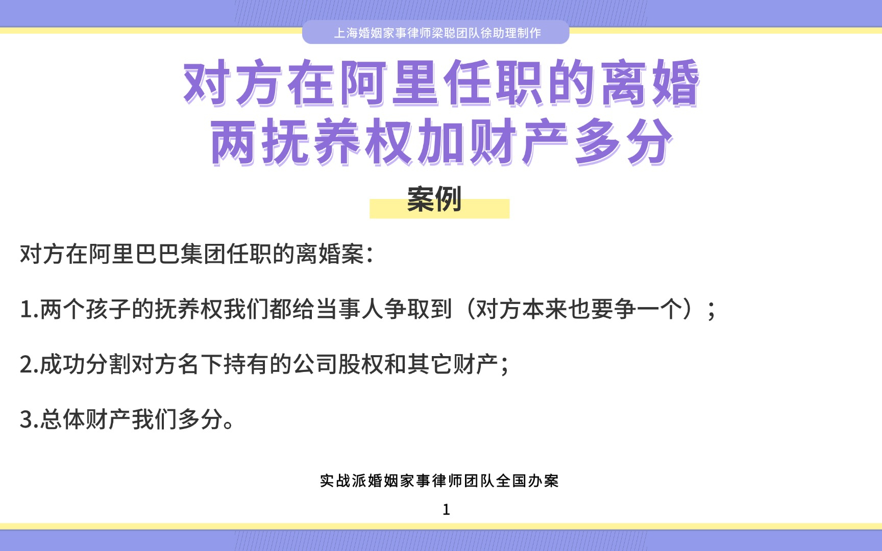 0次播放 | 00:13上海离婚律师梁聪:对方在阿里任职的离婚,两抚养权加财产多分