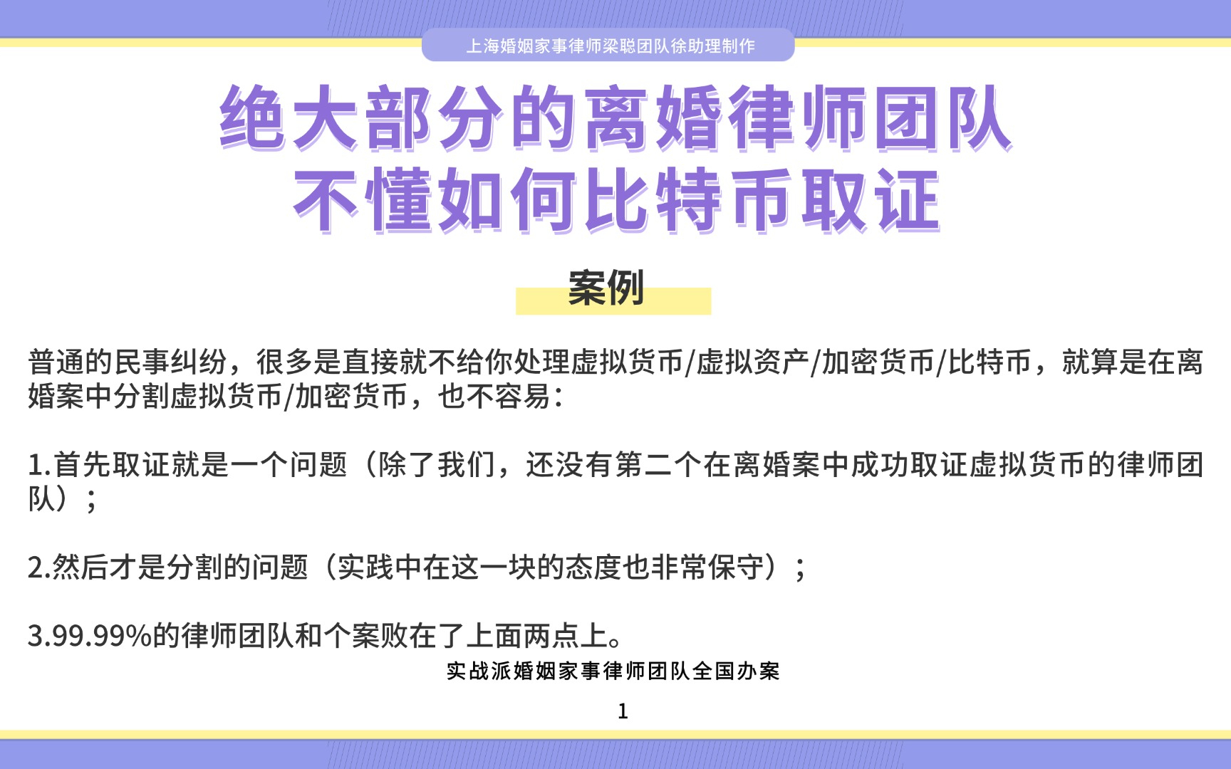 0次播放 | 00:13上海婚姻家事律师梁聪律师团队原创:大部分的离婚律师团队,不懂如何比特币取证