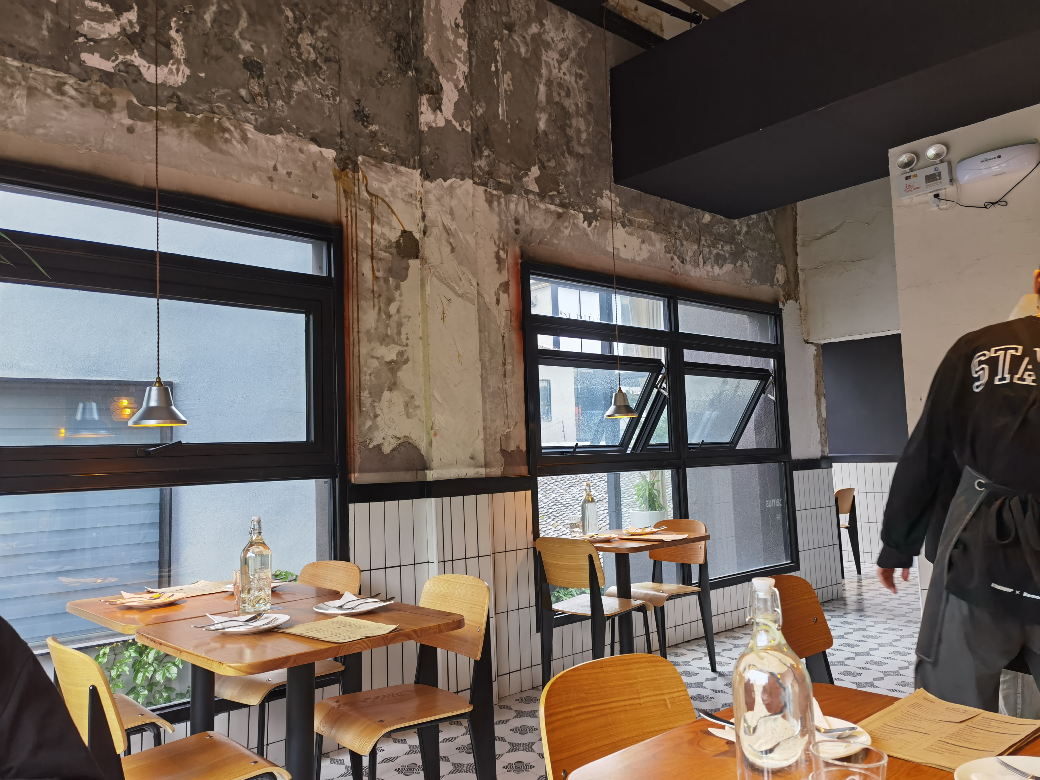 鹈鹕餐厅杭州第一批网红西餐店,风评一直很好,就是一直没机会去去年在温州开了分店,然后趁着五一约个肥肥去拔草地址位于学院路的小坝坊创意街区,正在门口。整体是装修到一半就没钱的风格,上部分的墙应该完全没动