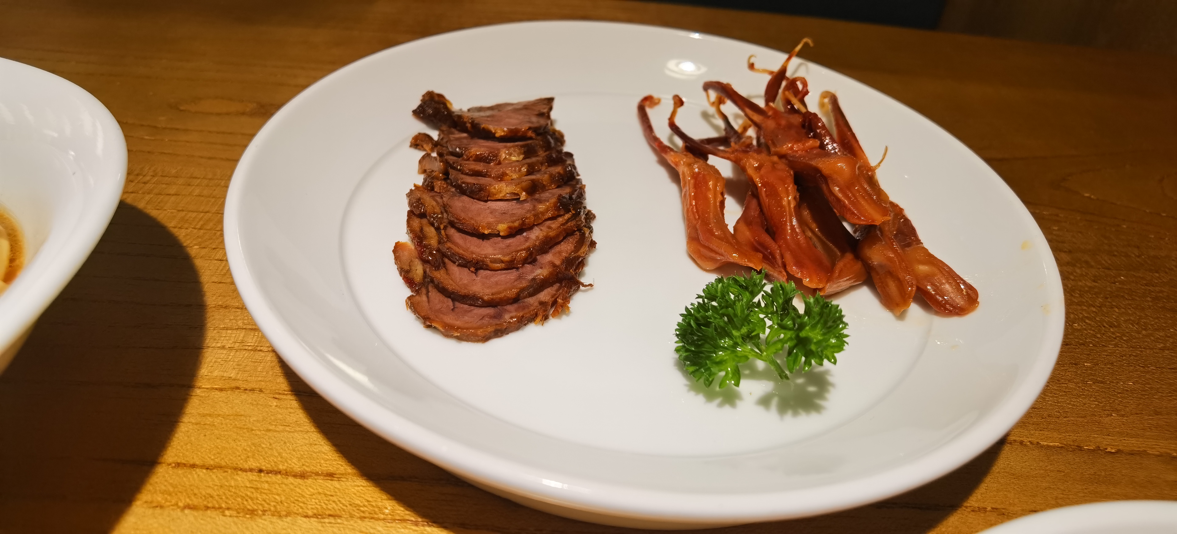 荣小馆 地址在温州印象城5楼。米其林3星餐厅——新荣记的平替款,因为是一个公司旗下的。台州临海出来的连锁餐厅。一个人吃不了太多,去了两次卤牛肉拼鸭舌鸭舌蛮好,不腥,选的大鸭舌。牛肉卤很透,入味,不废牙