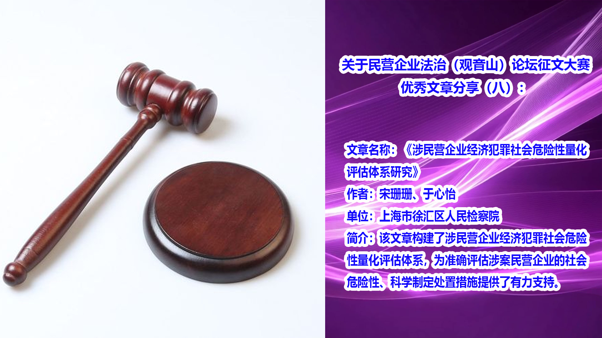 关于民营企业法治(观音山)论坛征文大赛优秀文章分享(八):涉民营企业经济犯罪社会危险性量化评估体系研究全文约7900字,预计阅读需要16分钟。为深入贯彻全面依法治国的基本方略,积极响应国家关于优化营商
