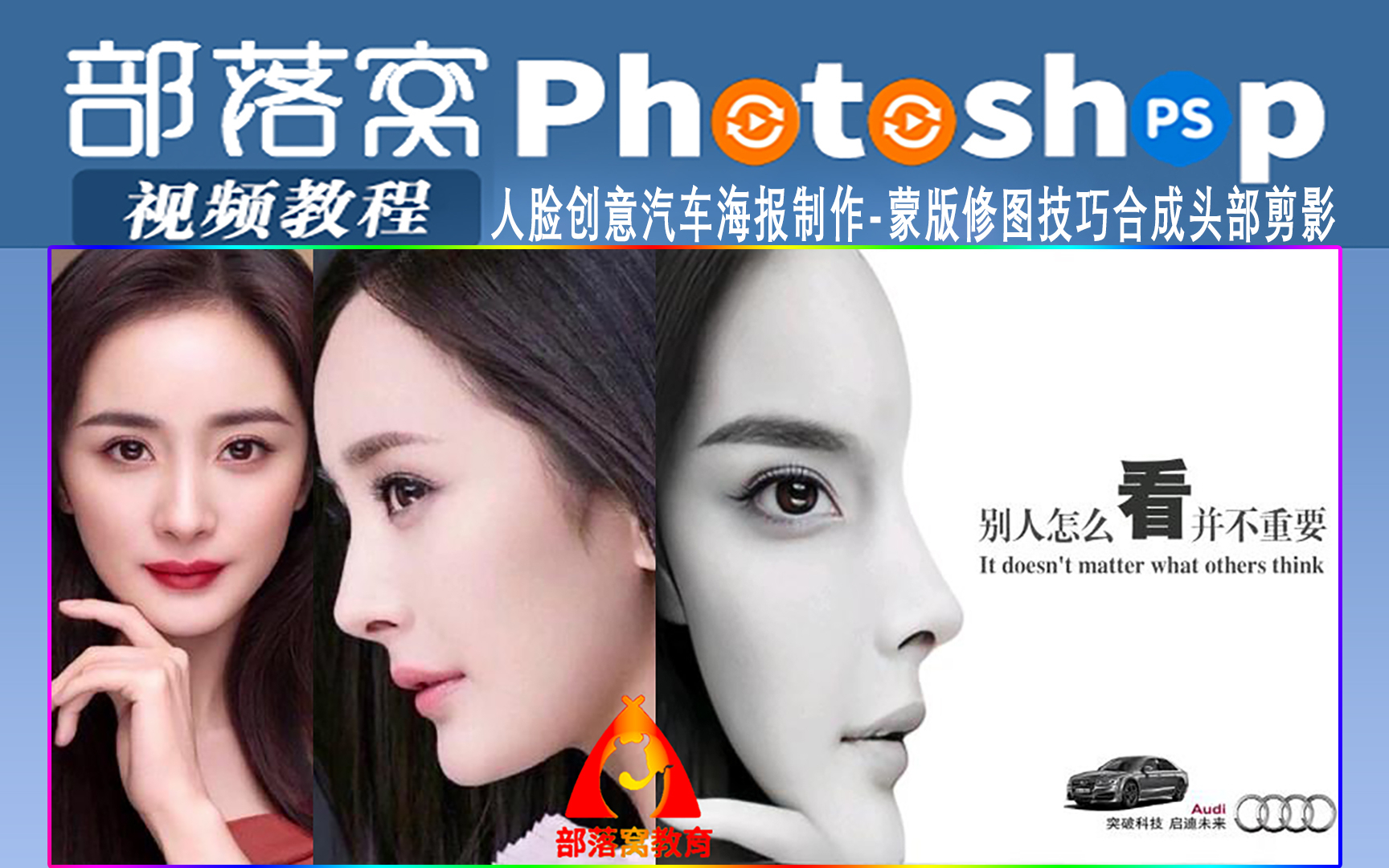 ps人脸创意汽车海报制作视频:蒙版修图技巧合成头部剪影
