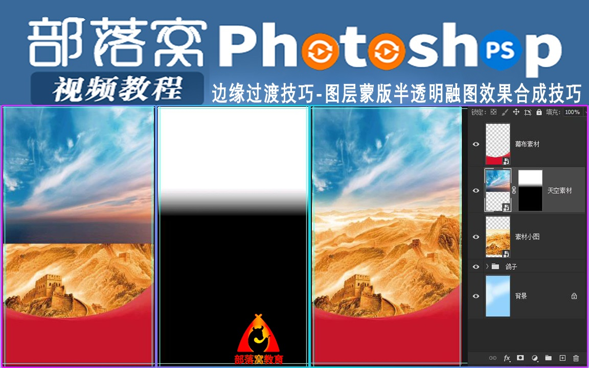 ps边缘过渡技巧视频:图层蒙版半透明融图效果合成技巧