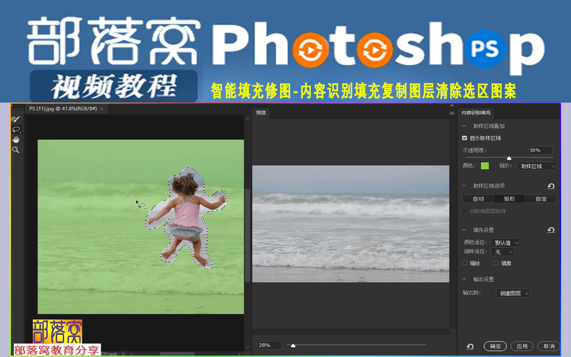 ps智能修图技巧视频:内容识别填充原理边缘过渡技巧