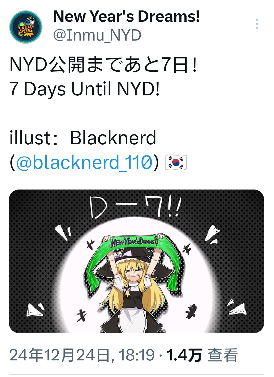 NYD2025没有倒计时图,补一下去年的,就当给今年预热了图源来自NYD官方推特,侵权请联系删除倒计时第十天,绘师是来自日本的mmnternet兄贵倒计时第七天,绘师是来自韩国的Blacknerd兄贵