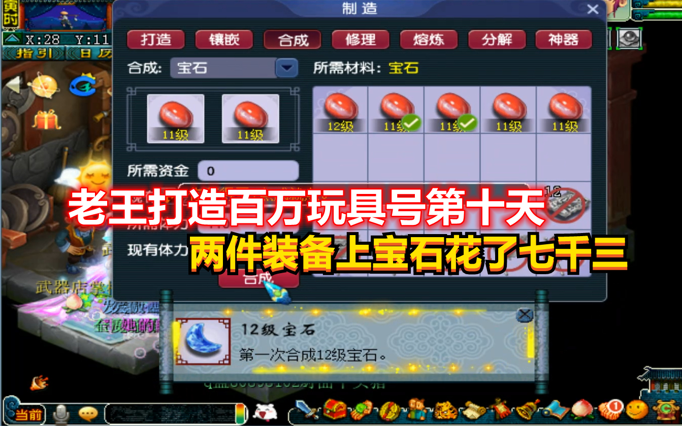 梦幻西游:老王打造百万玩具号第十天,两件装备上宝石花了七千三