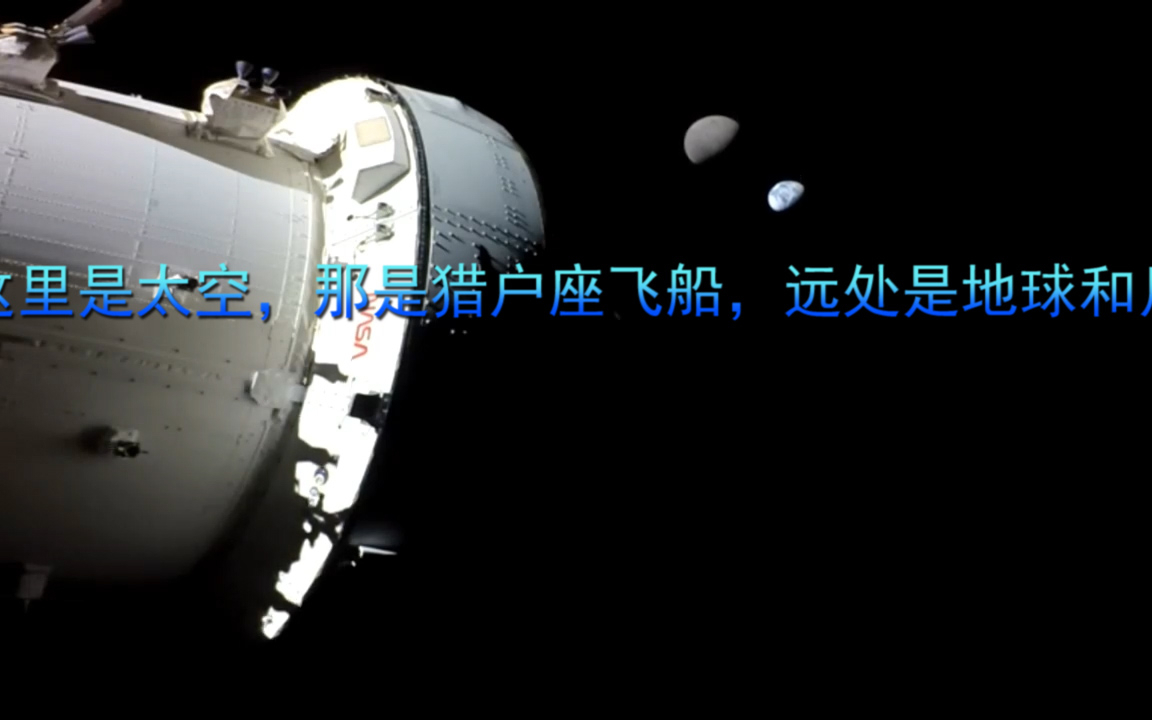 这里是太空,那是猎户座飞船,远处是地球和月亮