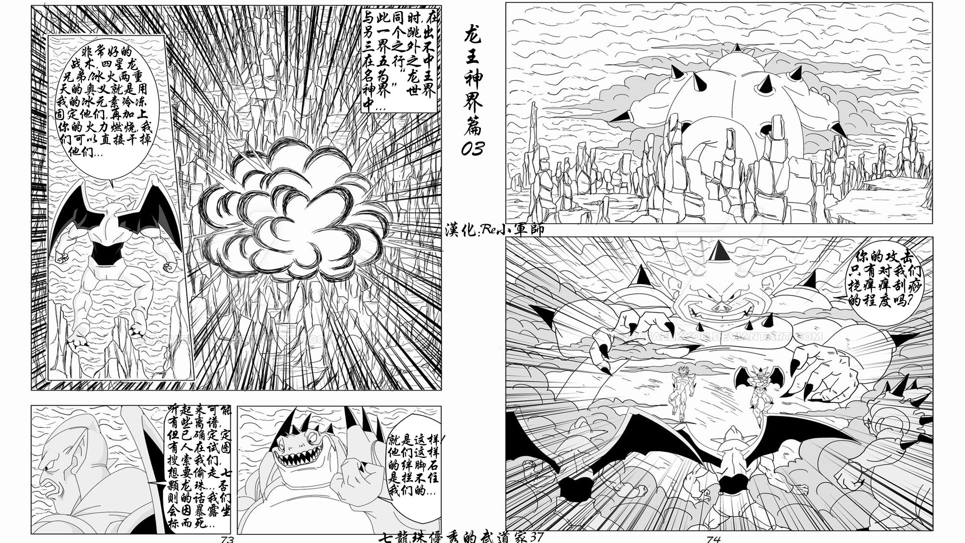 七龙珠龙王神界篇04龙王喷水之争作者:rafaelkyon汉化:Re小軍師龙王神界中喷水峰神龙宫中的孙悟空、波仑伽、羽应龙、红龙等在与暗黑魔龙山止水峰水晶宫中的邪恶龙们进行龙王神界领域龙王之争,争夺最