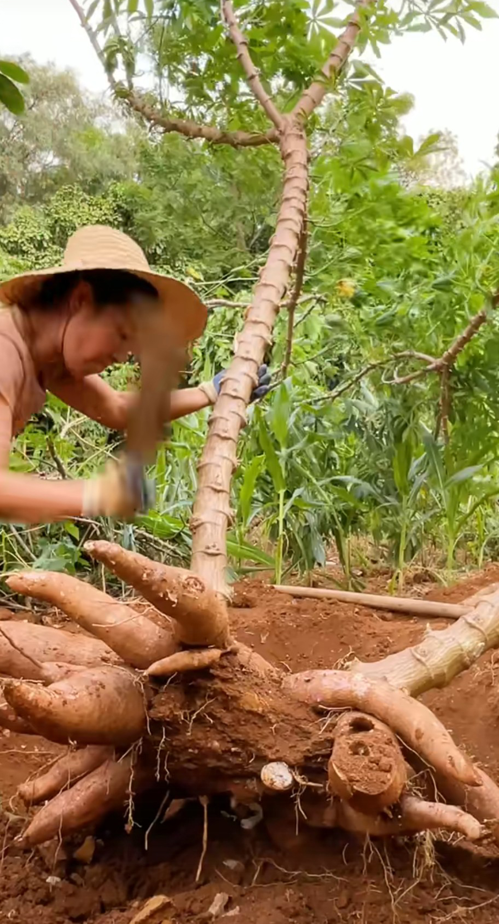 一株2米左右的“大树”,被“丽萍”轻松地砍倒了,抱起胳膊粗的“大树根”回家,经过2天的精心制作,一道美味的带有家乡风味的“木薯粉虫”做成了,香辣酸爽好吃极了。北方的朋友们可能很陌生,南方的朋友们大部分