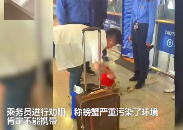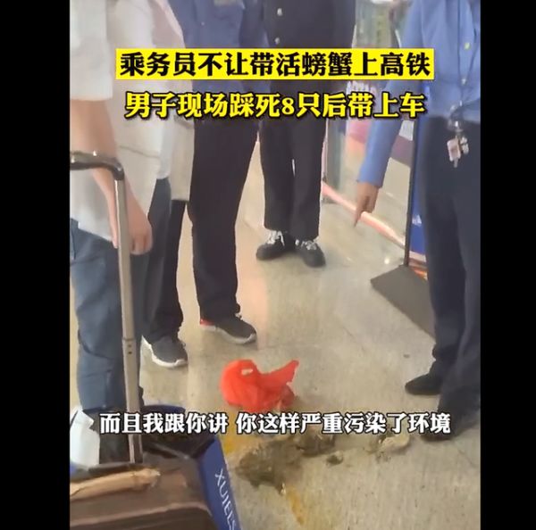 活螃蟹不让带上高铁,男子当场踩死8只后上车,铁路部门回应
