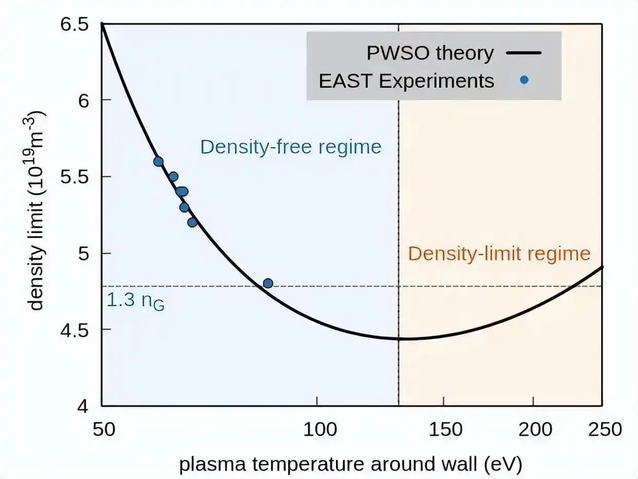 环球时报1月2日,中国科学院合肥物质科学研究院等离子体物理研究所科研团队宣布,有“人造太阳”之称的全超导托卡马克核聚变实验装置(EAST)实验证实托卡马克密度自由区的存在,找到突破密度极限的方法,为磁