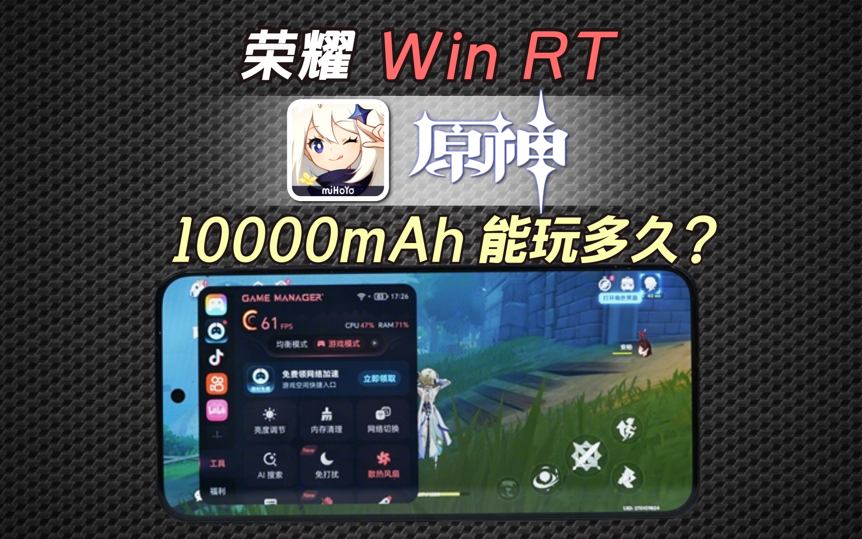 • 10000mAh电池玩【原神】,荣耀Win RT能坚持多久?