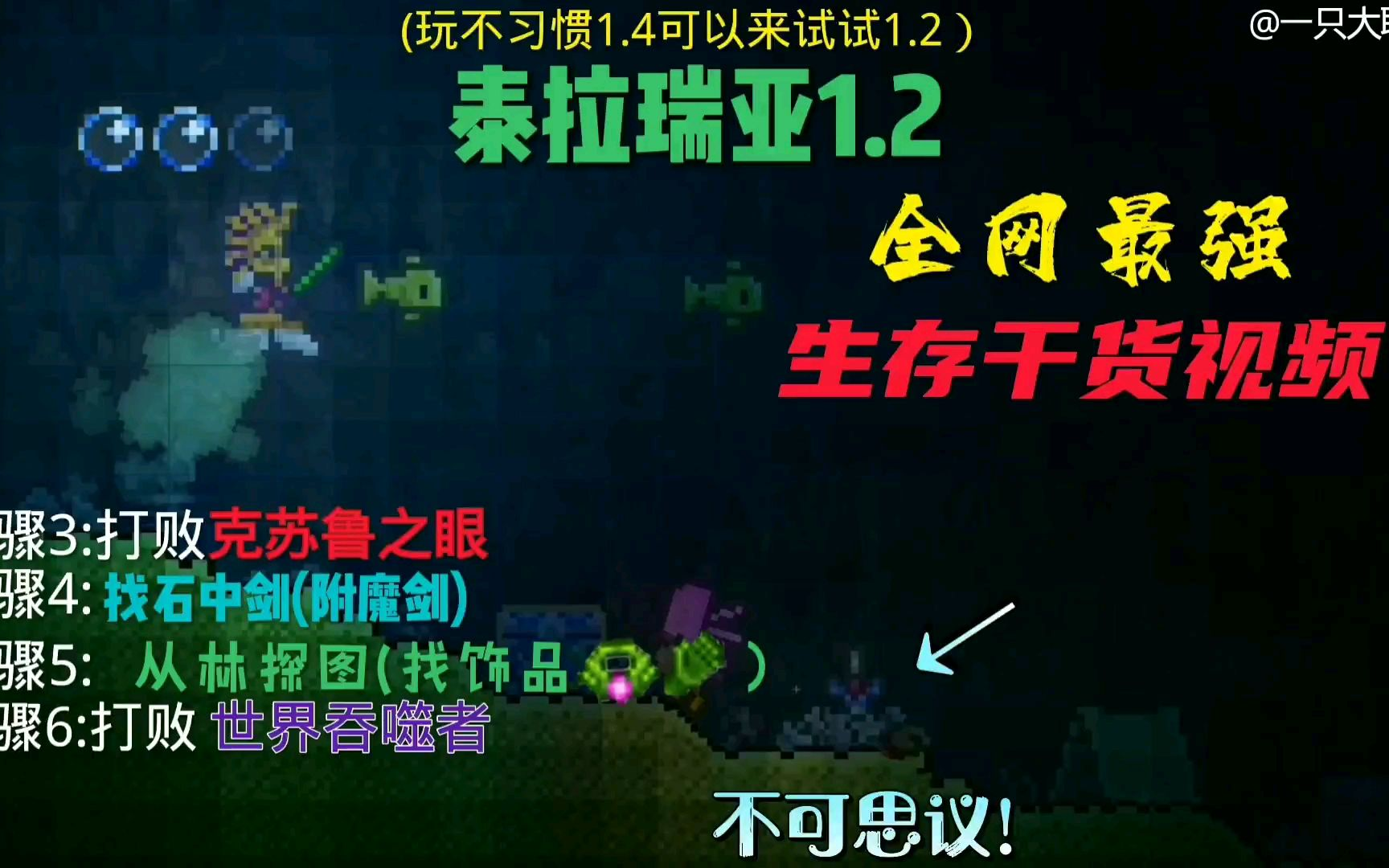 1066次播放 | 05:09泰拉瑞亚1.2生存速通集锦,第二集:不可思议,海里竟然刷出石中剑