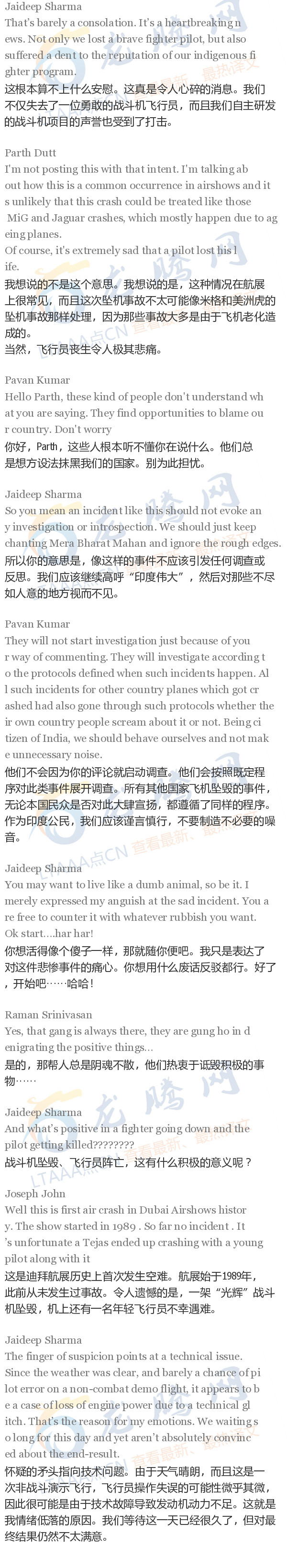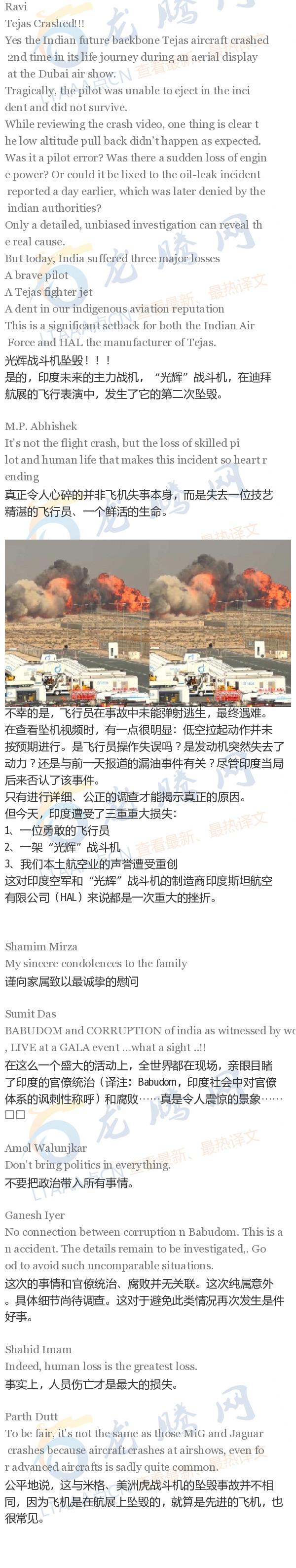 【龙腾网】印度网友讨论:光辉战斗机坠毁!!!