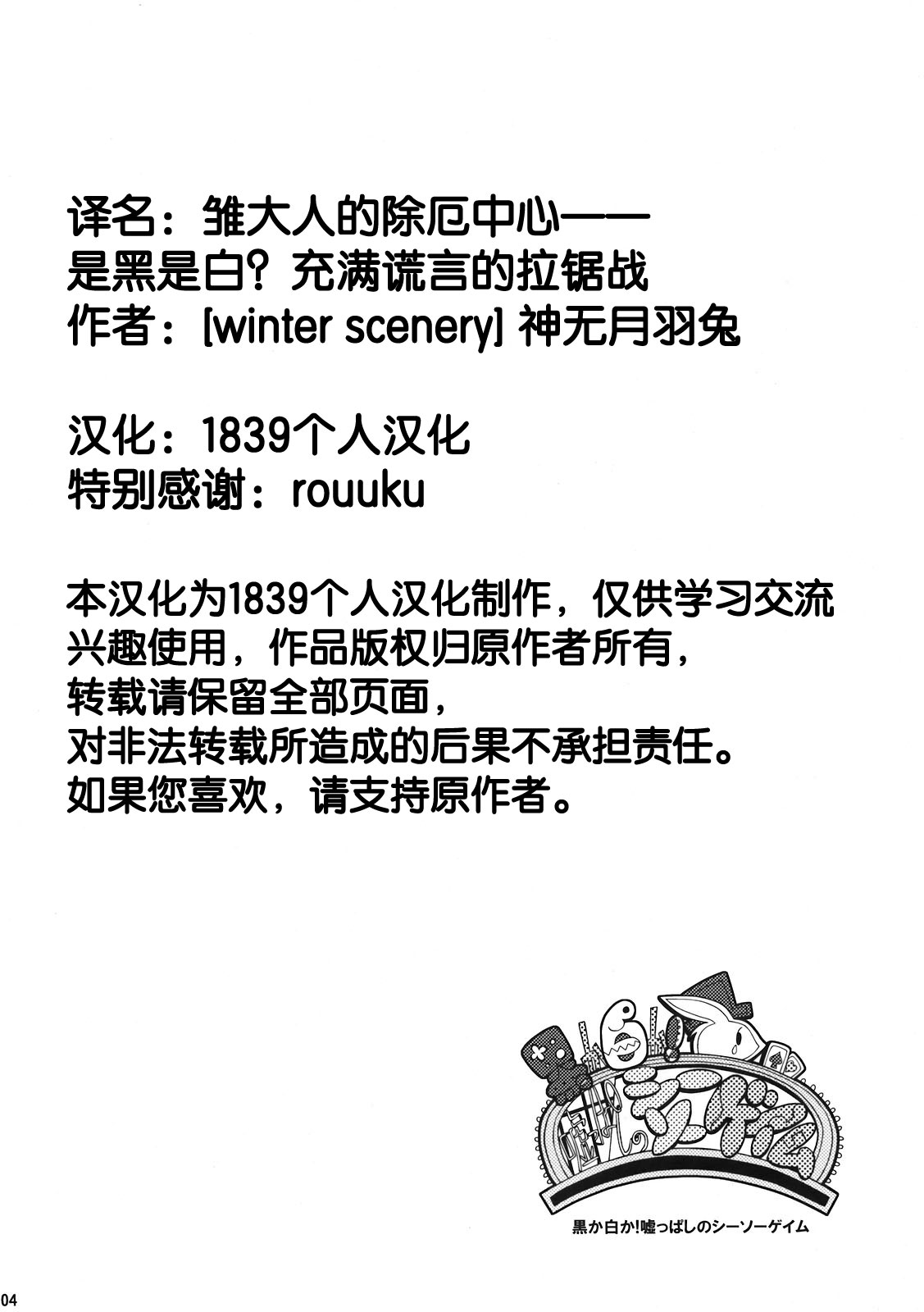 【东方 漫画】雏大人的除厄中心—是黑是白?充满谎言的拉锯战