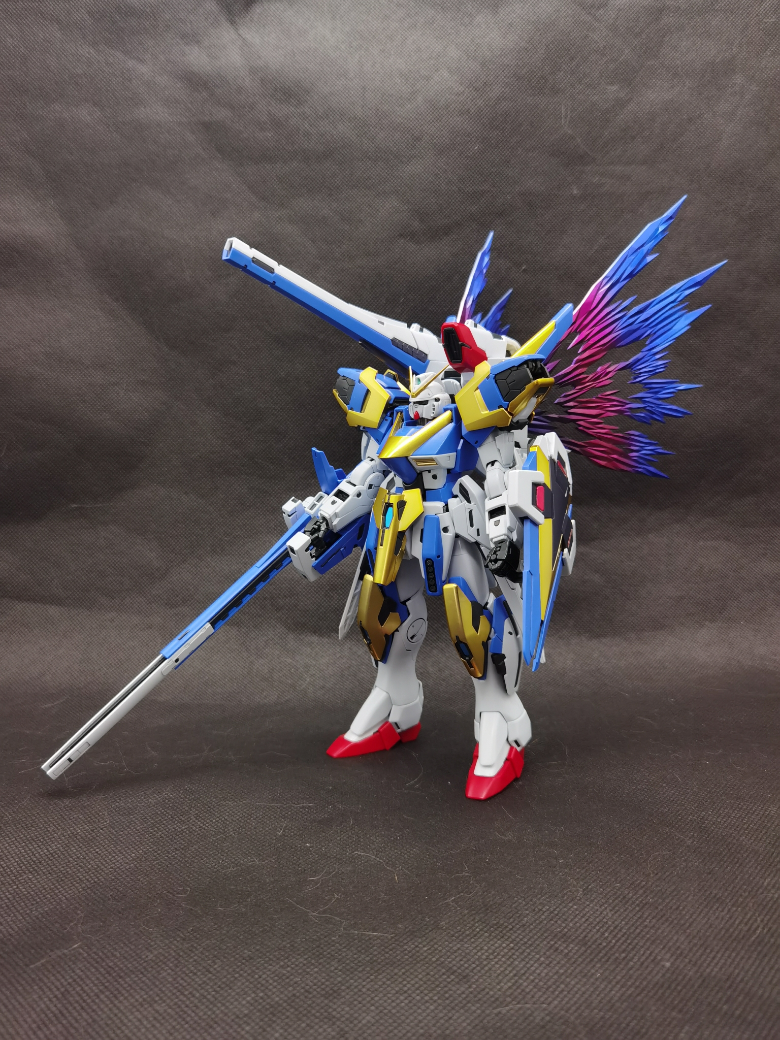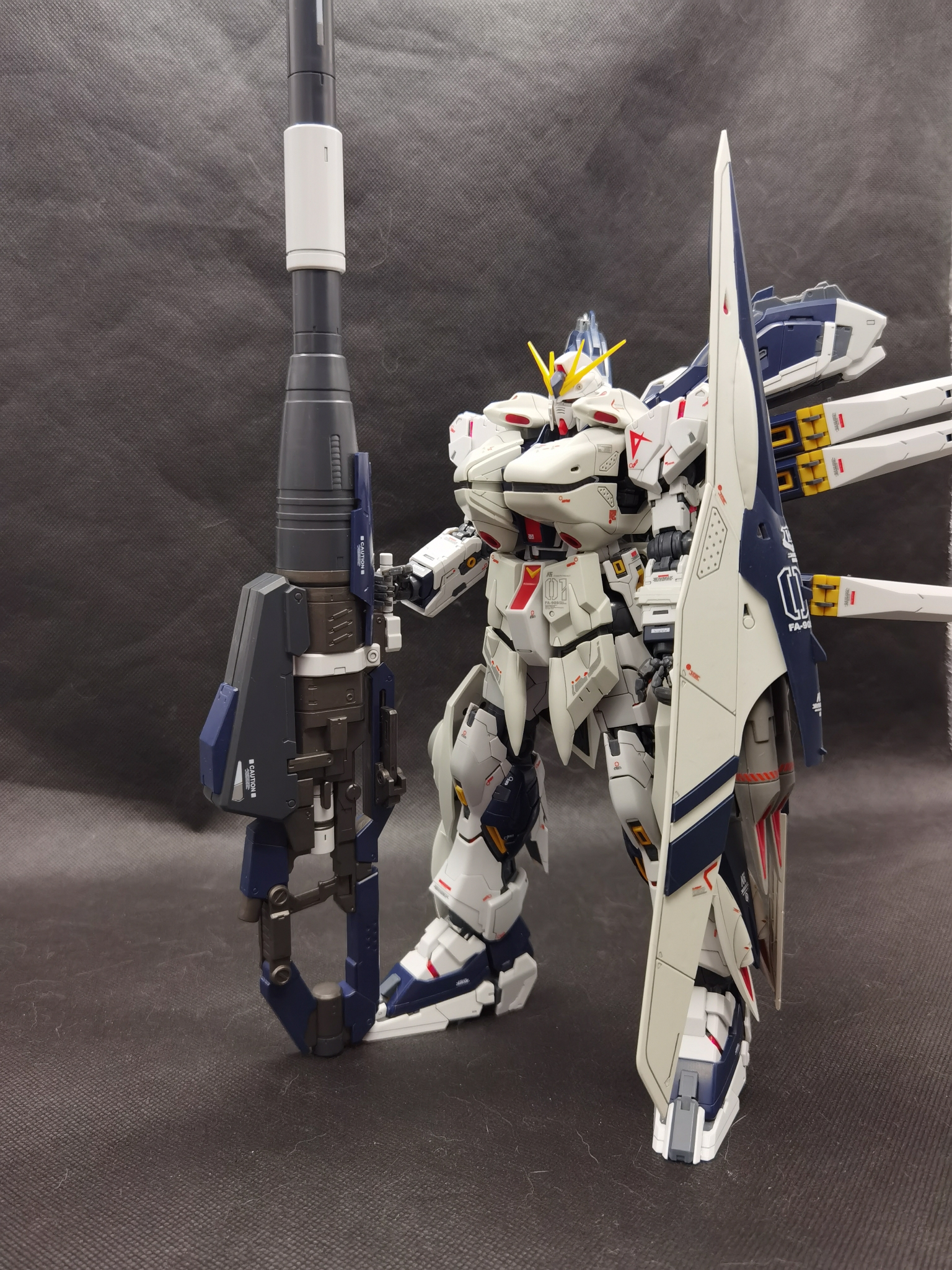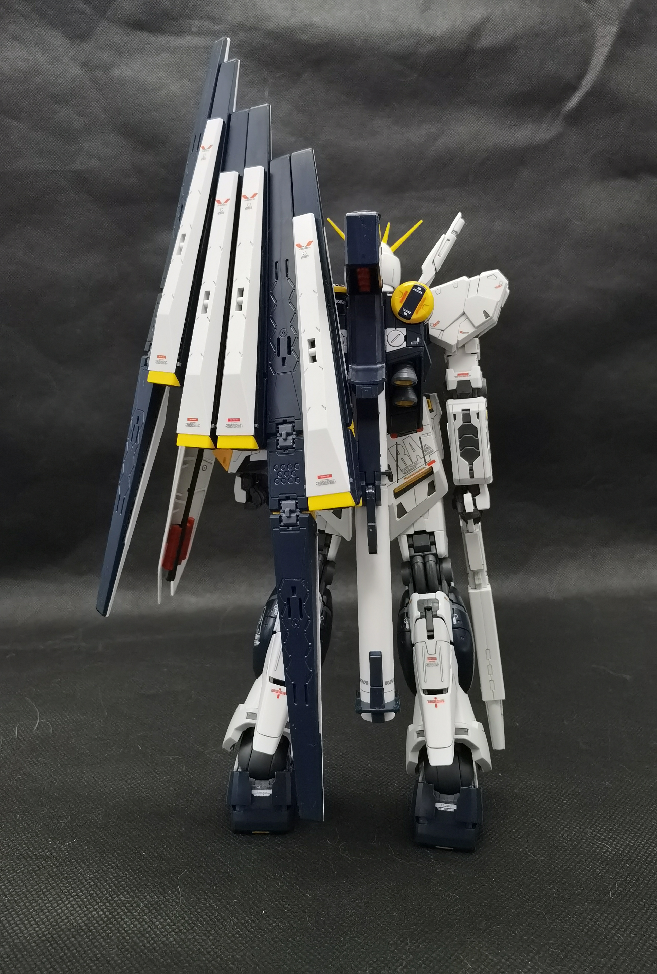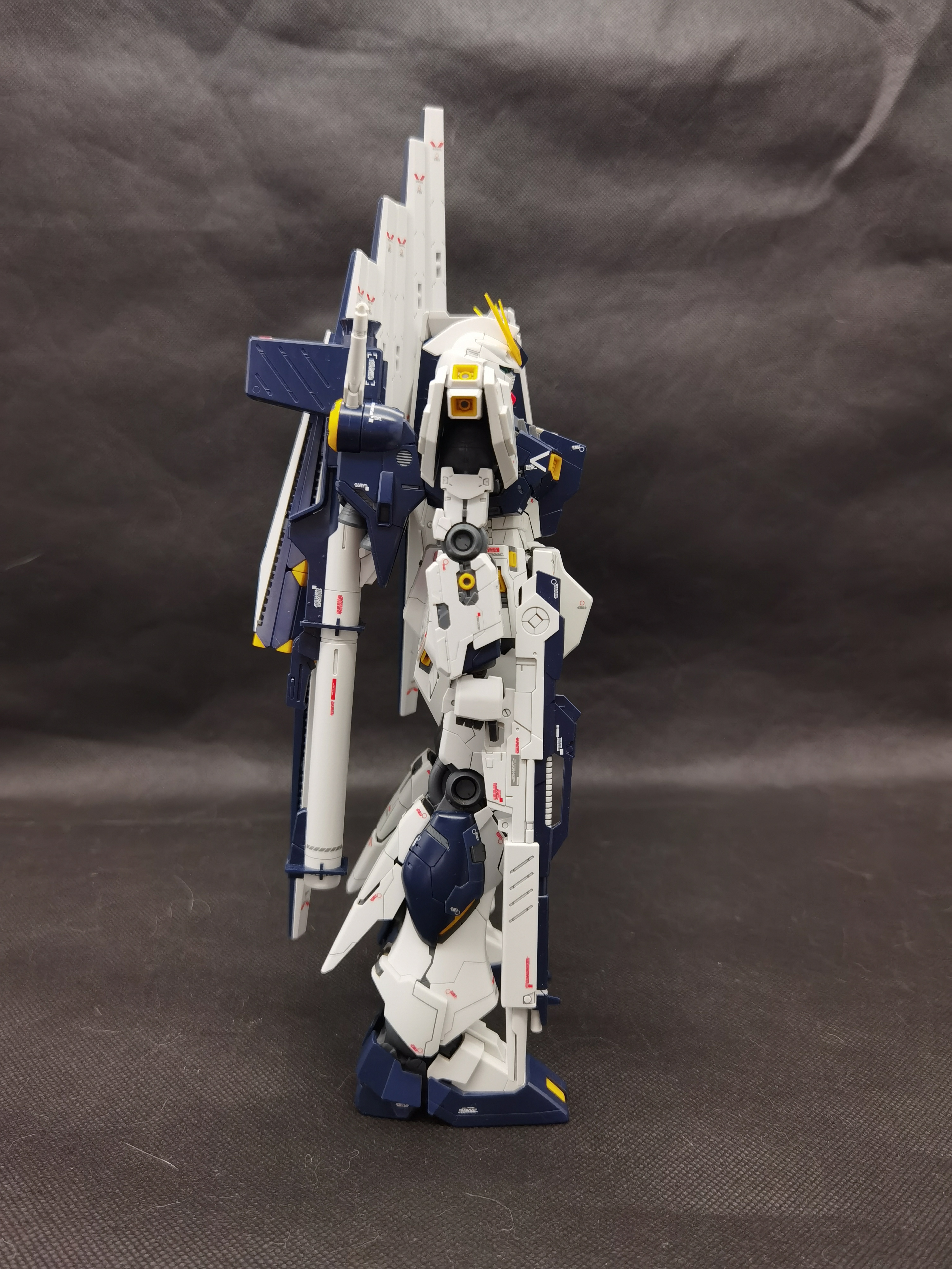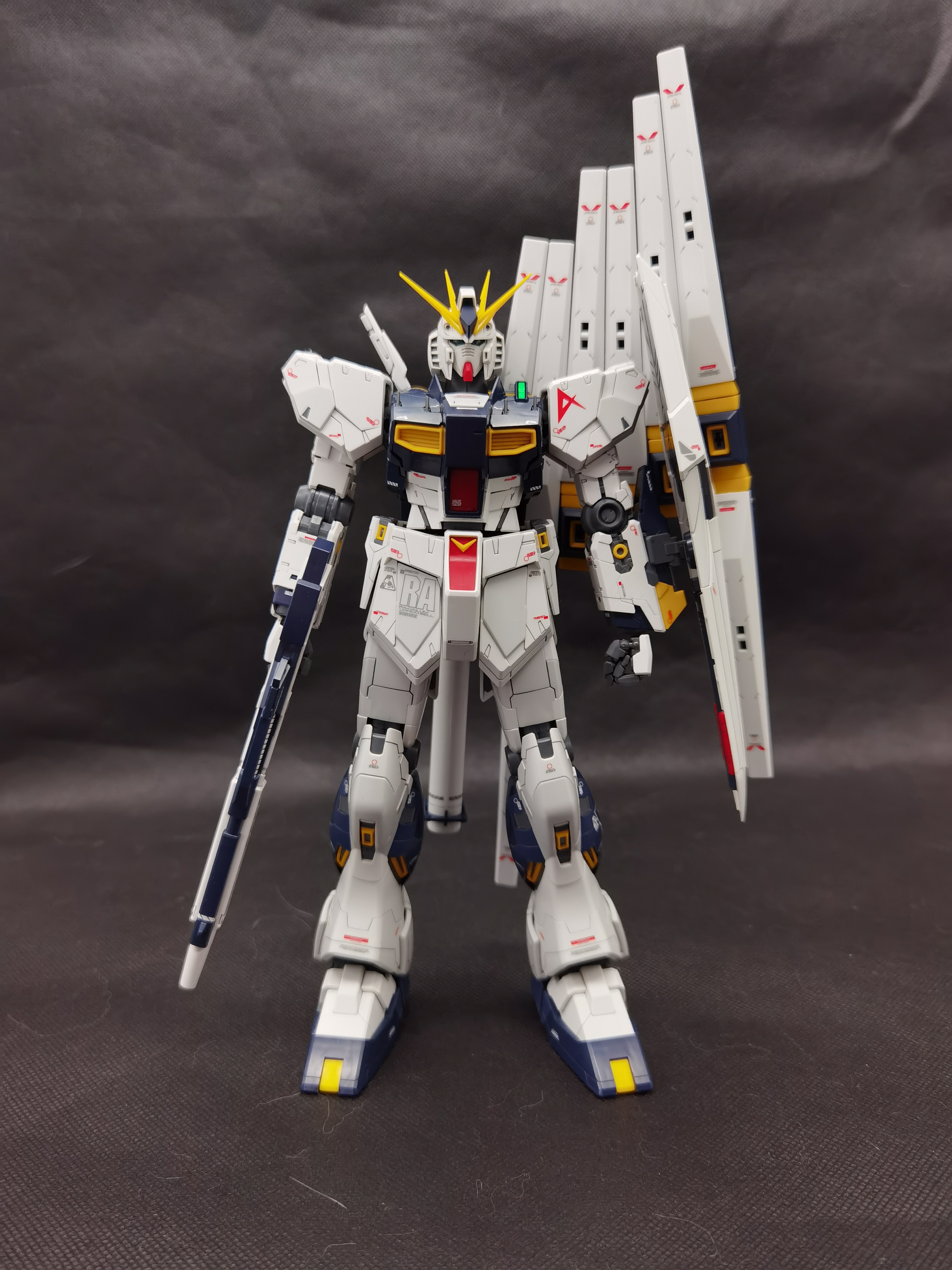 这次带来的是万代的MG KA版ν高达。这个字母是 Nu(大写Ν,小写ν),是第十三个希腊字母。读音接近牛,所以这个又叫牛高达。本体的分色是比较理想的,喷口也有内衬分色,白色外甲有不少小色差分色,给了一