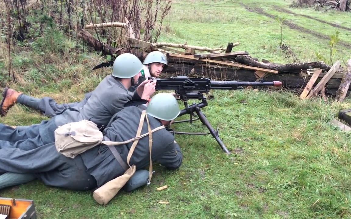 战争重演-二战意大利士兵用布雷达m37重机枪射击