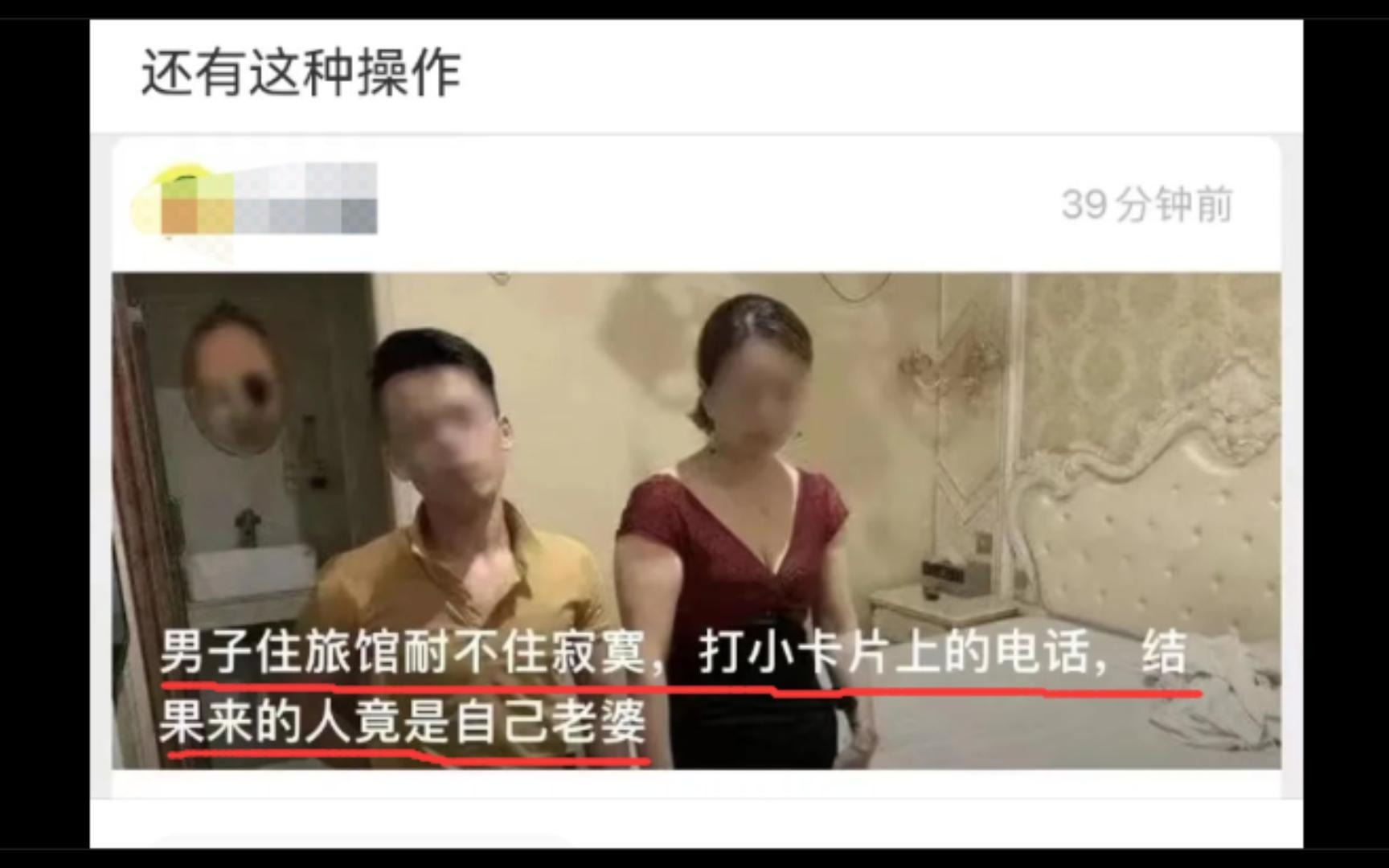男子住旅馆耐不住寂寞,打小卡片上的电话,结果来的人竟是自己老婆!