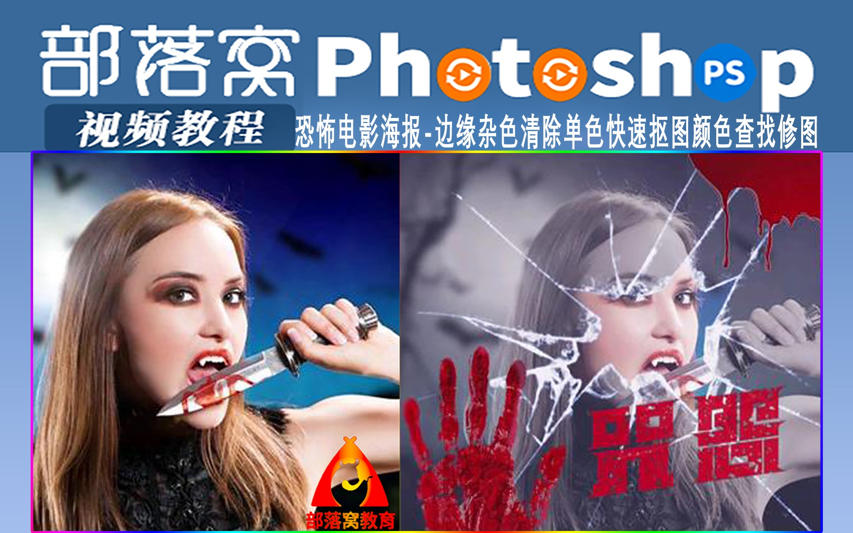 ps恐怖电影海报视频:边缘杂色清除单色快速抠图颜色查找修图