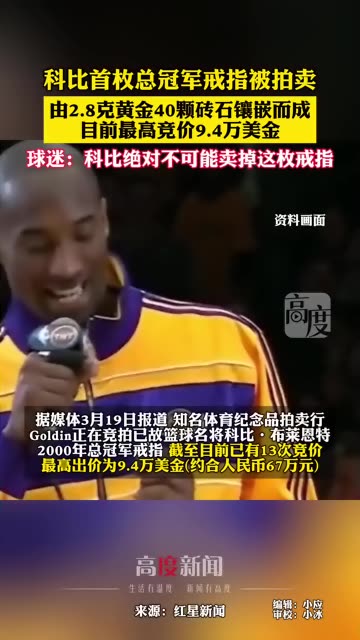 16次播放 | 01:18科比首枚总冠军戒指被拍卖,目前最高竞价67万