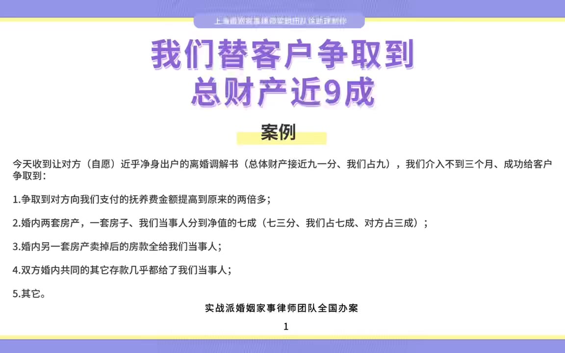 0次播放 | 00:12上海离婚律师梁聪律师团队原创:我们替客户争取到总财产近9成