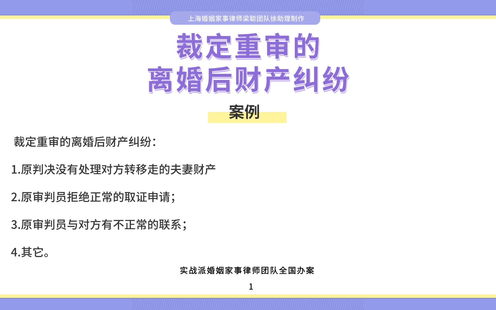 0次播放 | 00:12上海婚姻家事律师梁聪律师团队原创:裁定重审的离婚后财产纠纷