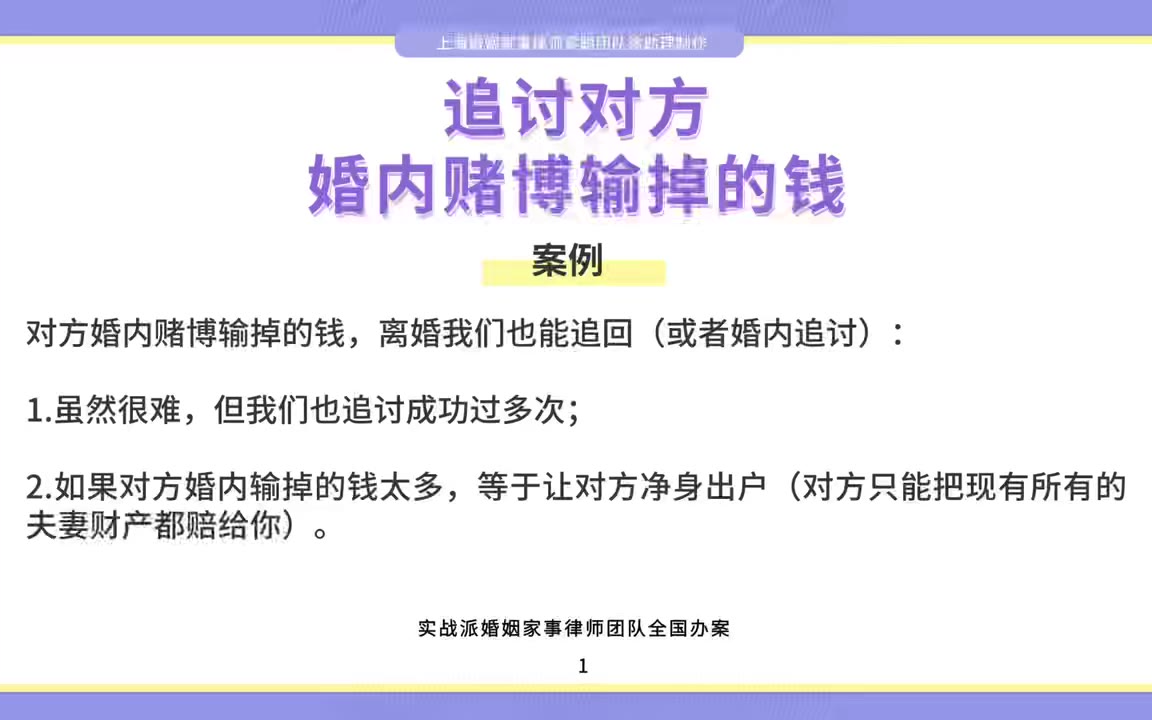 0次播放 | 00:13上海婚姻家事律师梁聪律师团队原创:追讨对方婚内赌博输掉的钱