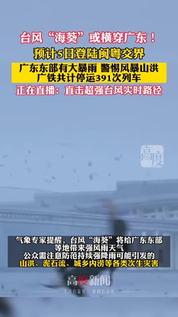 20次播放 | 00:29台风“海葵”或横穿广东!预计5日登陆闽粤交界。广东东部有大暴雨 警惕风暴山洪,广铁共计停运39...