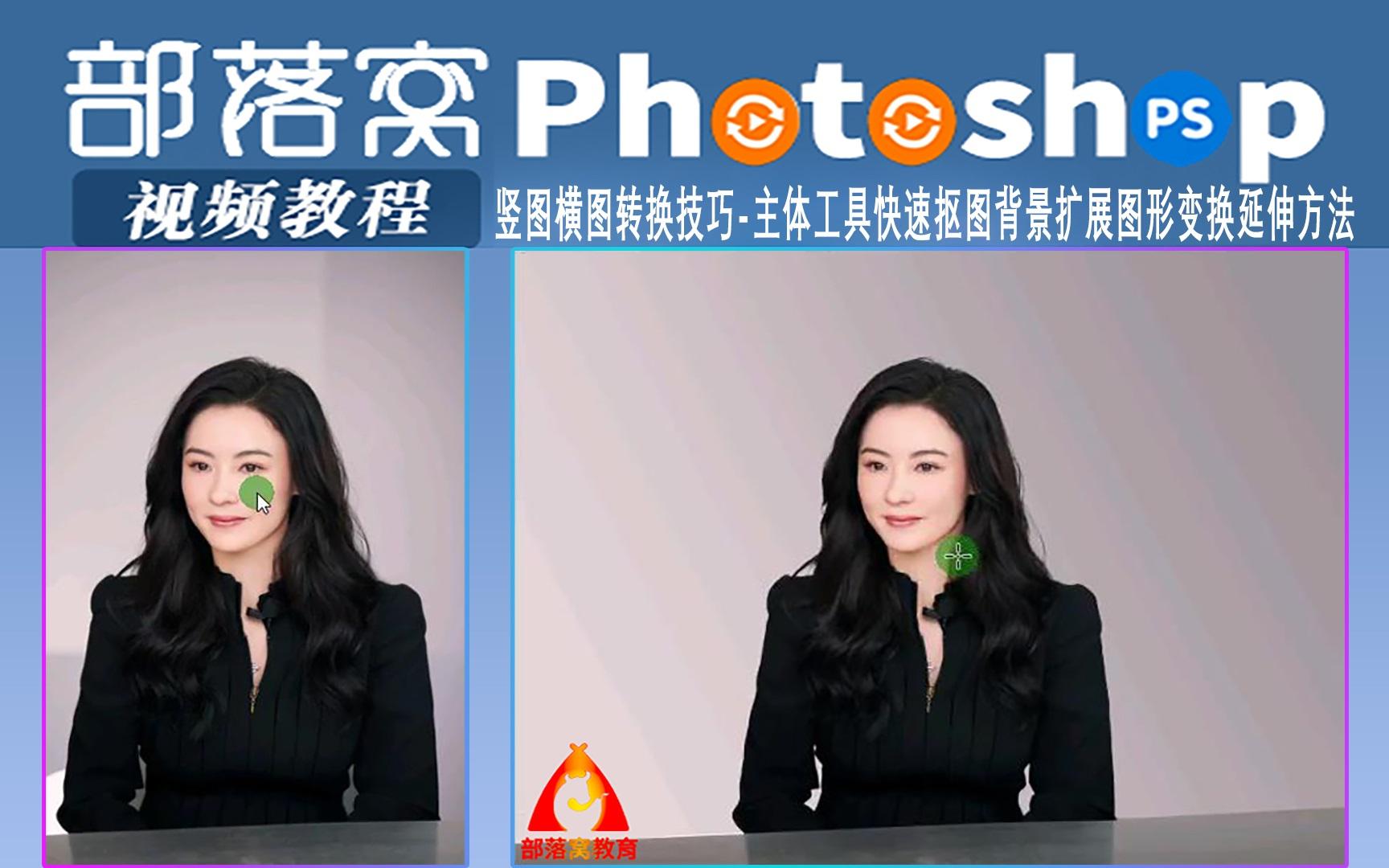 ps竖图横图转换技巧视频:主体工具快速抠图背景扩展图形变换延伸方法
