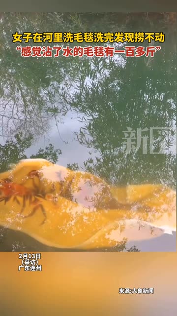 10次播放 | 00:12女子在河里洗毛毯洗完发现捞不动,感觉沾了水的毛毯有一百多斤。