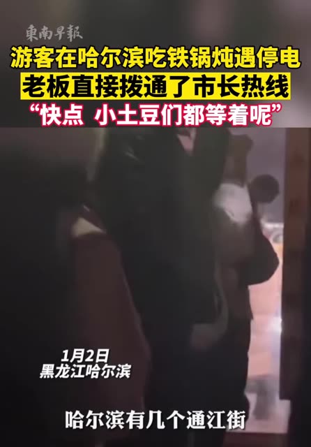 45次播放 | 00:23游客在哈尔滨吃铁锅炖遇停电,老板直接拨通了市长热线:“快点,小土豆们都等着!”