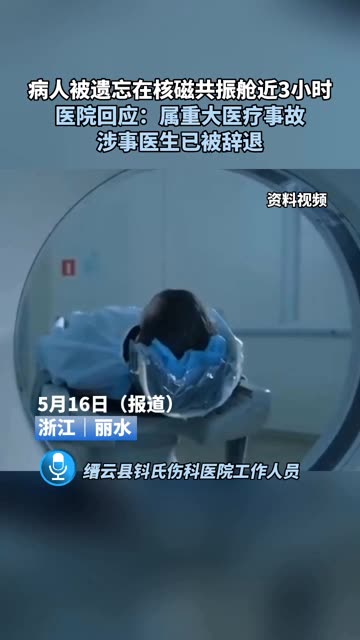 病人被遗忘在核磁共振舱近3小时,医院回应:属重大医疗事故,涉事医生已被辞退