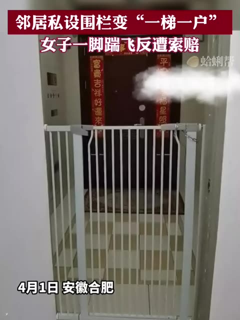 邻居私设围栏变“一梯一户”,女子出门无法乘梯怒踹飞,反遭索赔