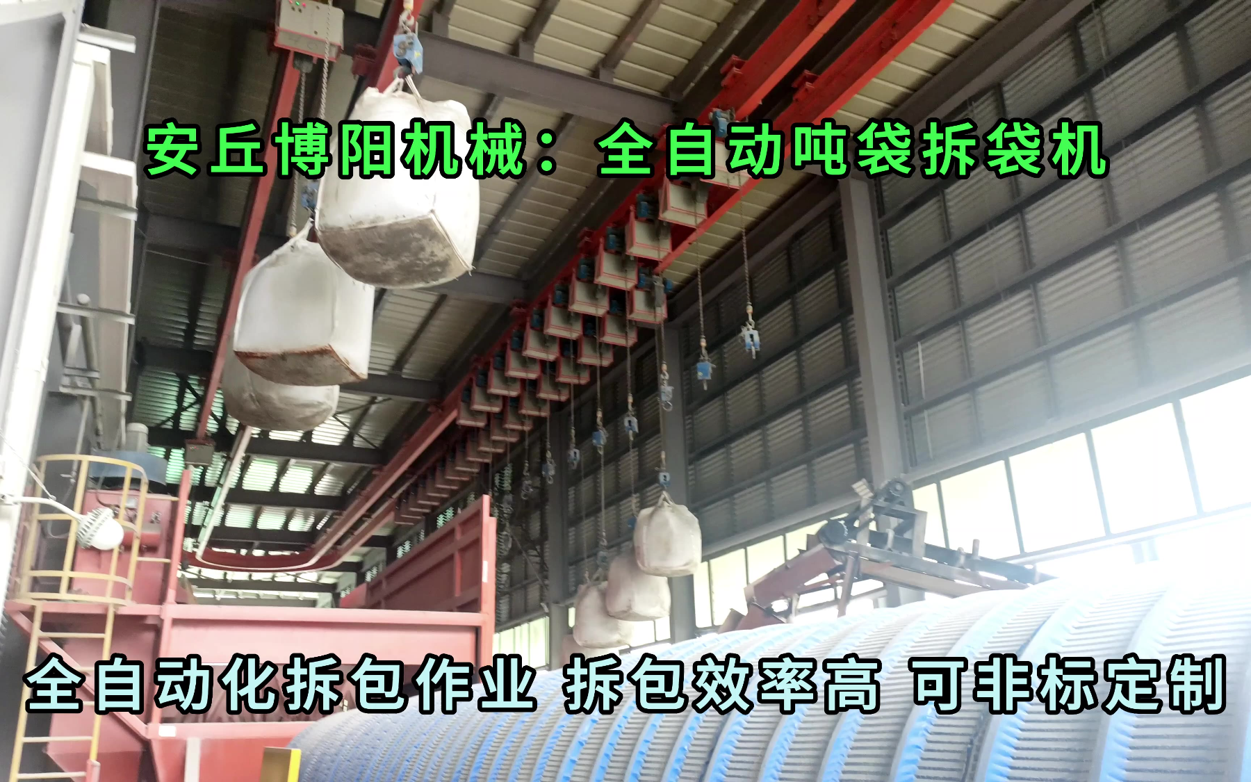 50次播放 | 00:23硫酸镍全自动吨袋拆包机 吊轨式吨袋自动拆包机优势