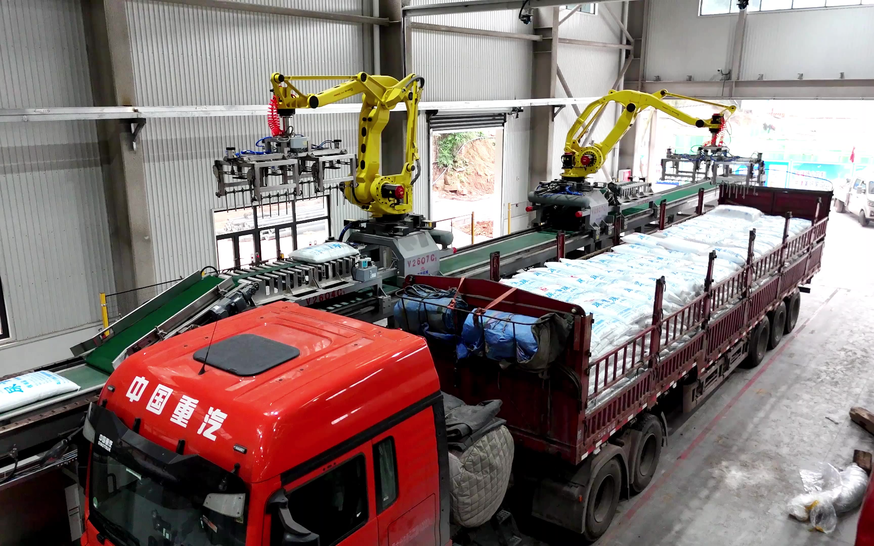 48次播放 | 00:21袋装粉料全自动装车机,智能全自动装车机械手