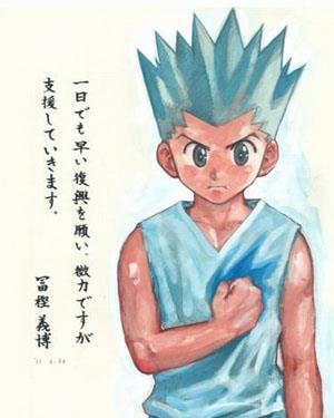众所都知,富坚老贼很懒,JUMP拖稿甚至能拖上几年……有ACer在《JUMP50周年贺图》评论里说想看富坚画过的贺图,这里统一发下(搬运自搜狐)1. 2011年 日本地震应援图2011年3月11日,日