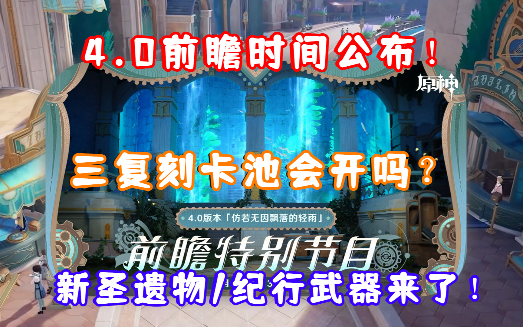 (原神)4.0枫丹前瞻时间公布!三复刻卡池会开吗?新圣遗物合成/纪行武器来了!会有新的海洋书吗?
