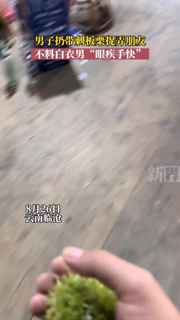 12次播放 | 00:08男子扔带刺板栗捉弄朋友,不料白衣男“眼疾手快”。
