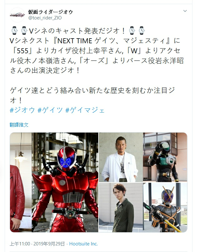 假面骑士NEXT TIME盖茨外传由来自假面骑士555中的草加雅人(村上幸平饰演)、假面骑士W的照井龙(木ノ本岭浩饰演)、假面骑士OOO的伊达明(岩永洋昭)回归出演决定时王将如何与盖茨等人交汇,创造新