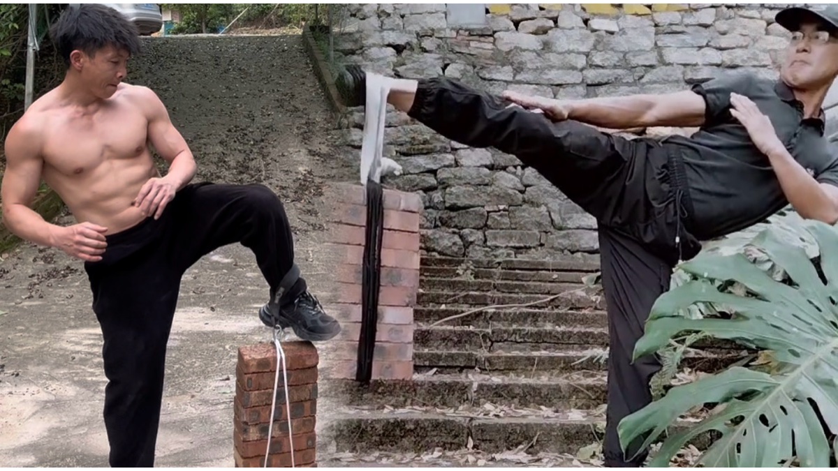 挑战负重控腿,10块砖