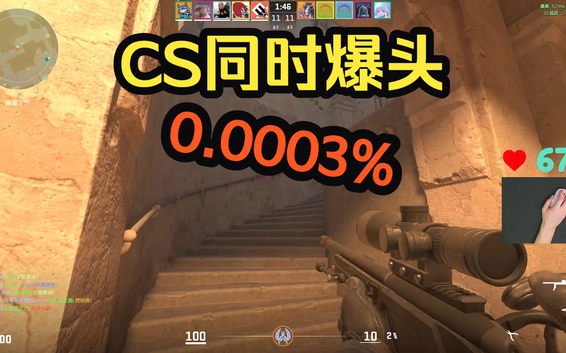 CS2同时击中头部概率0.000009%(A站直播)