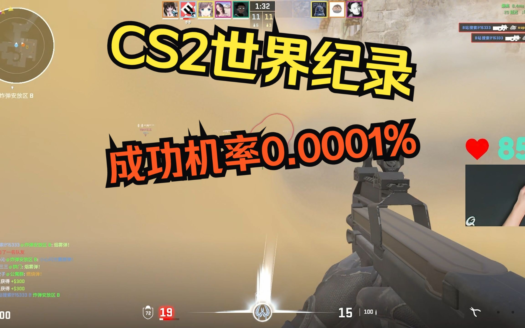 P90教科书“CS2混烟5杀”成功机率0.0001%