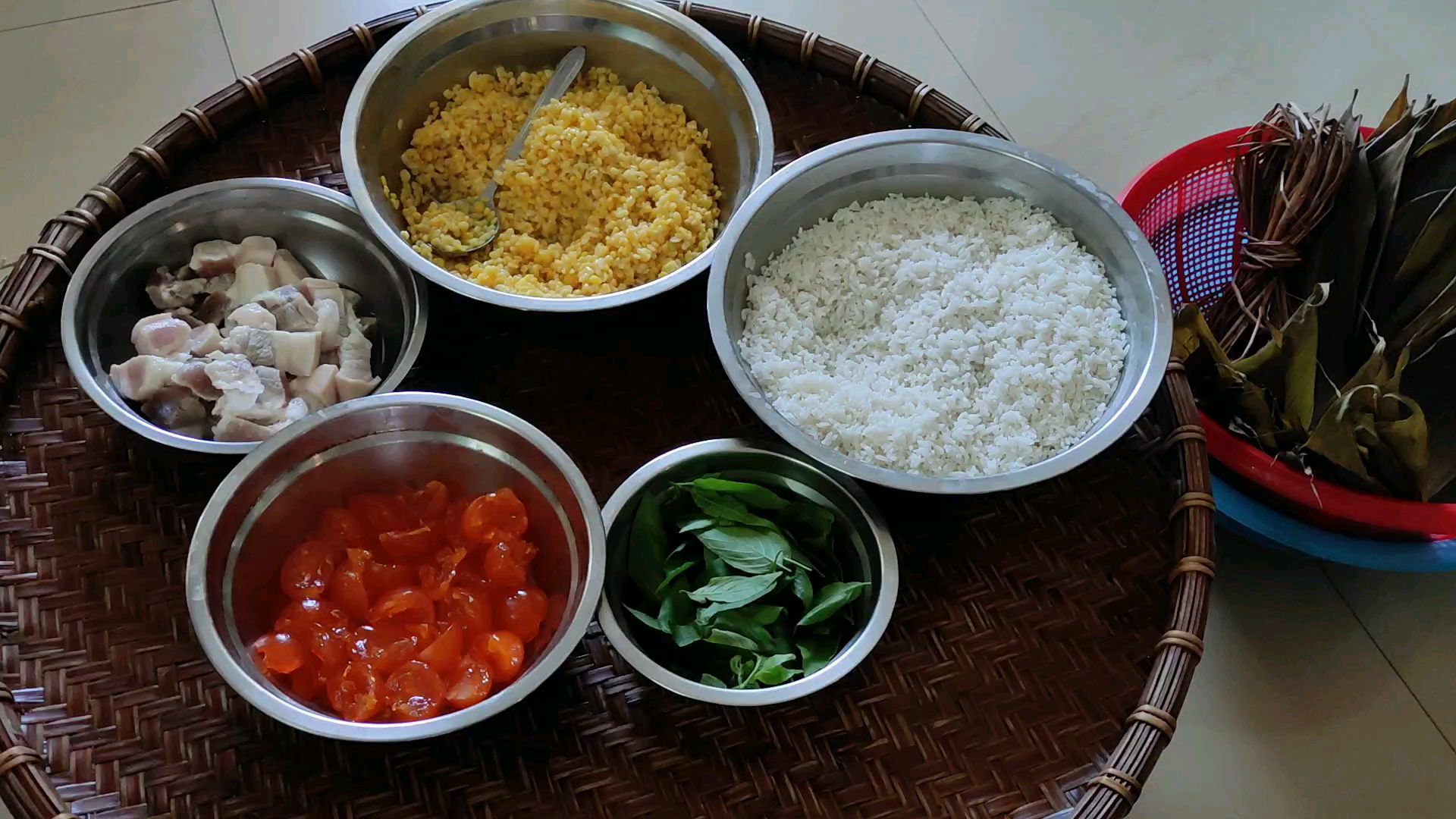 制作广式裹蒸粽五花肉咸蛋绿豆