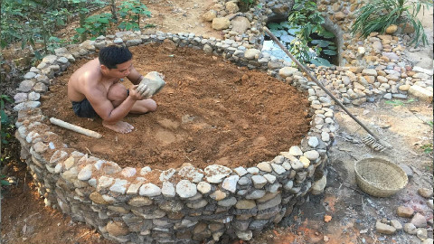 【原始的生活】鱼池过滤系统(第51弹)1080P超清(越南小哥原始技术,简直是我的世界和饥荒真人版)