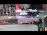 他用钻头在冰块上创作,完成时一片掌声