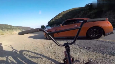 山路上小伙子骑单车与跑车比赛,到底哪个快?