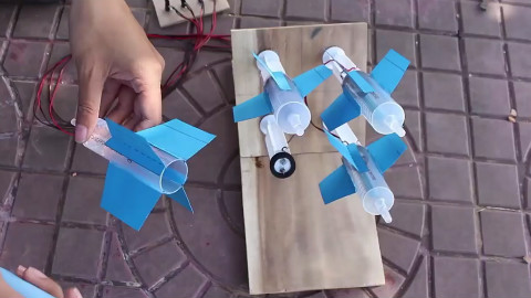 注射器加电子起火器自制一台4筒火箭发射器