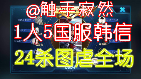 【王者荣耀寂然】1人手打5国服韩信 24杀图虐王者荣耀峡谷