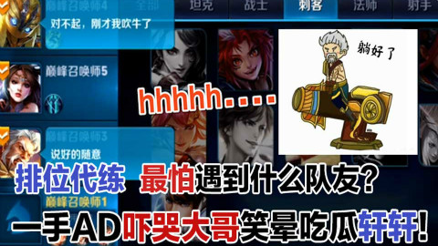 王者荣耀:排位代练最怕遇到什么队友?一手AD吓哭大哥笑晕吃瓜轩轩!