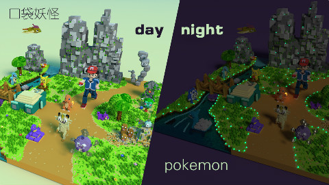 magicavoxel夜景渲染调试-pokemon口袋妖怪大集合